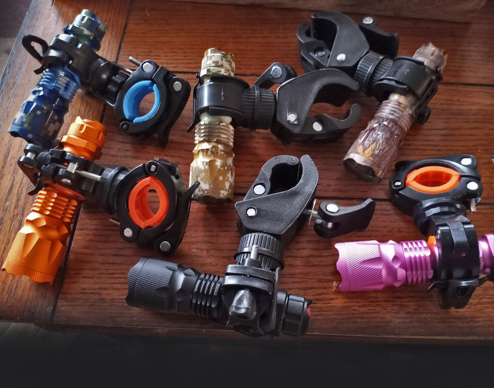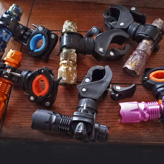 Please note: We stock several different variations of clamps as well as flashlight colors. We are currently not taking orders for specific variations. We will ship you whatever we have in stock at that time. Your combination of clamp and flashlight may vary.